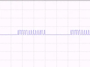 Now I’m sure even the most basic of beginners can identify this modulation…that’s right! It’s OOK! From here just by pausing the display I could visually determine the bits within the string. I made sure to type down what each button said.